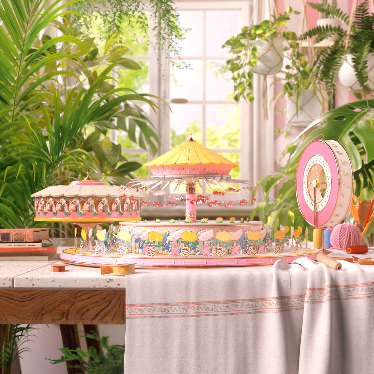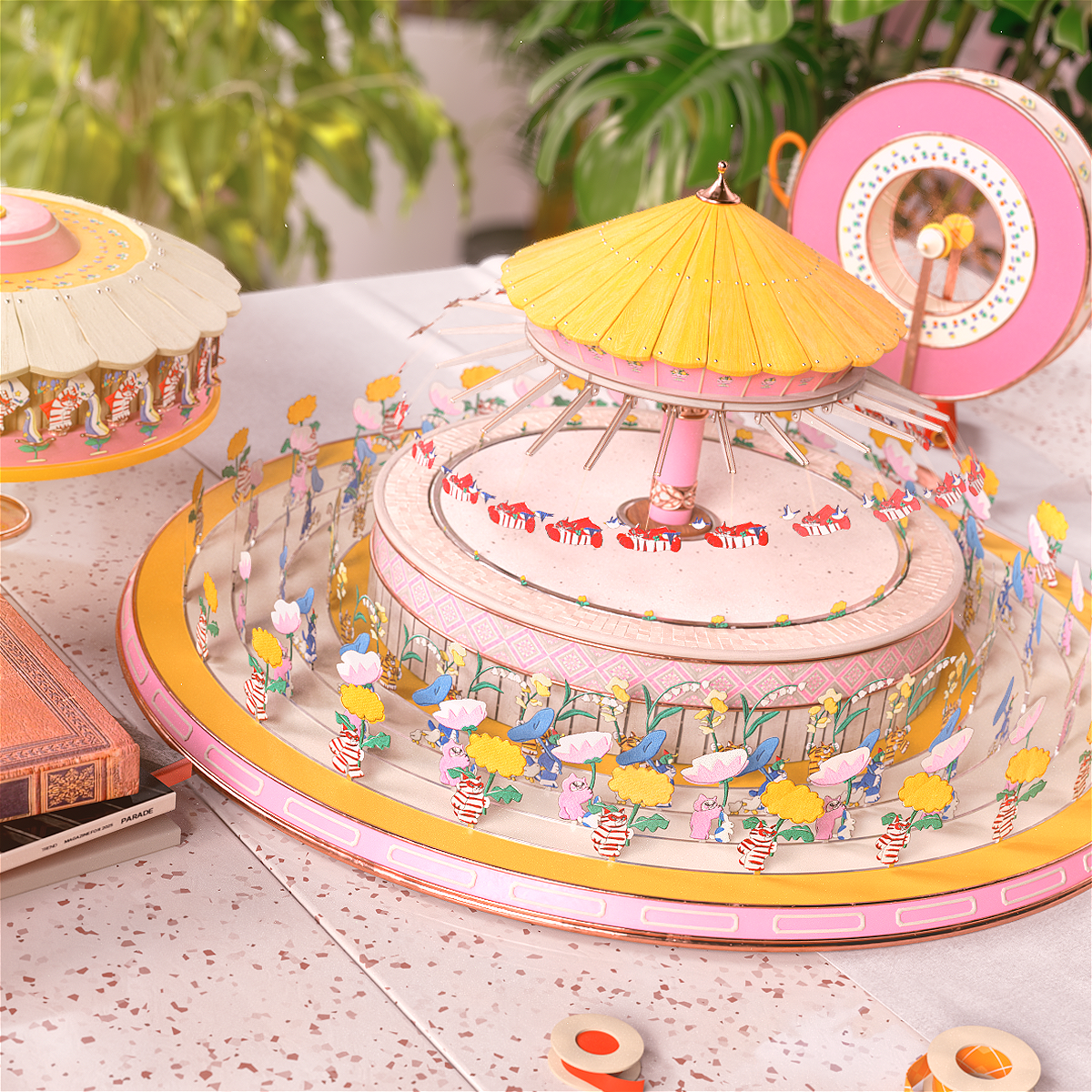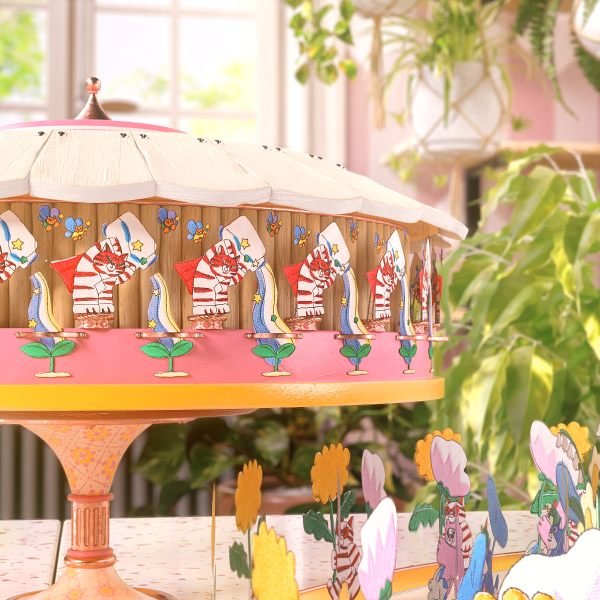 가느다란 실과 천으로 가장 작은 단위를 엮어가며 만들어낸 그림으로 세상 속 빈 곳을 채웁니다. 자수 작업으로 잘 알려진 고주연 작가의 오리지널 캐릭터 콘텐츠 ‘셔레이드쇼’의 주인공 코비를 통해 생명의 순환과 봄의 역동성을 주제로 한 이야기를 펼쳐냅니다. 개미들이 씨앗을 옮기고, 새싹과 꽃이 피어나며, 봄비가 내리고 개구리들이 점프하는 등 봄의 다채로운 풍경은 자수와 조이트로프 기법을 활용해 생동감 있게 표현됩니다.